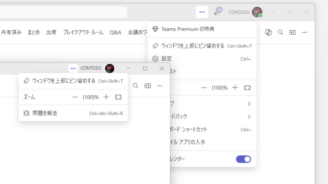 この 1 年間くらいのアップデートで、Microsoft Teams のいろんなところに「新しいウィンドウで開く」機能が実装されました。その結果、Microsoft Teams に関するいくつものウィンドウがデスクトップに散らばり、「あのウィンドウどこだっけな」ということも増えました。しかし、最近になって展開された「ウィンドウを上部にピン留め」する機能が、「おお!使ってみると便利じゃん!」と思ったので書き留めておきます。