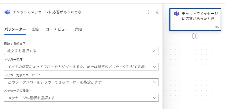 先ほどのトリガーでは、どういった絵文字に反応するかなどを設定できます。今回は、次のように設定しました。