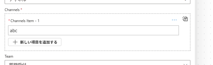これらの設定で設定方法に悩んだのは、Team の項目で対象となるチームを選択したあとの Channels の設定です。入力欄に「Select Channels」と書かれてあるものの、Team を選択しても一向に選択肢が出てきません。