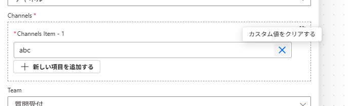 すると保存後にはなぜか Channels に入力した値をクリアできる「X」が入力欄に出てくるので、これで先ほどの適当な値をクリアすると、なんとも不思議なことに選択肢が表示されるようになりました。
