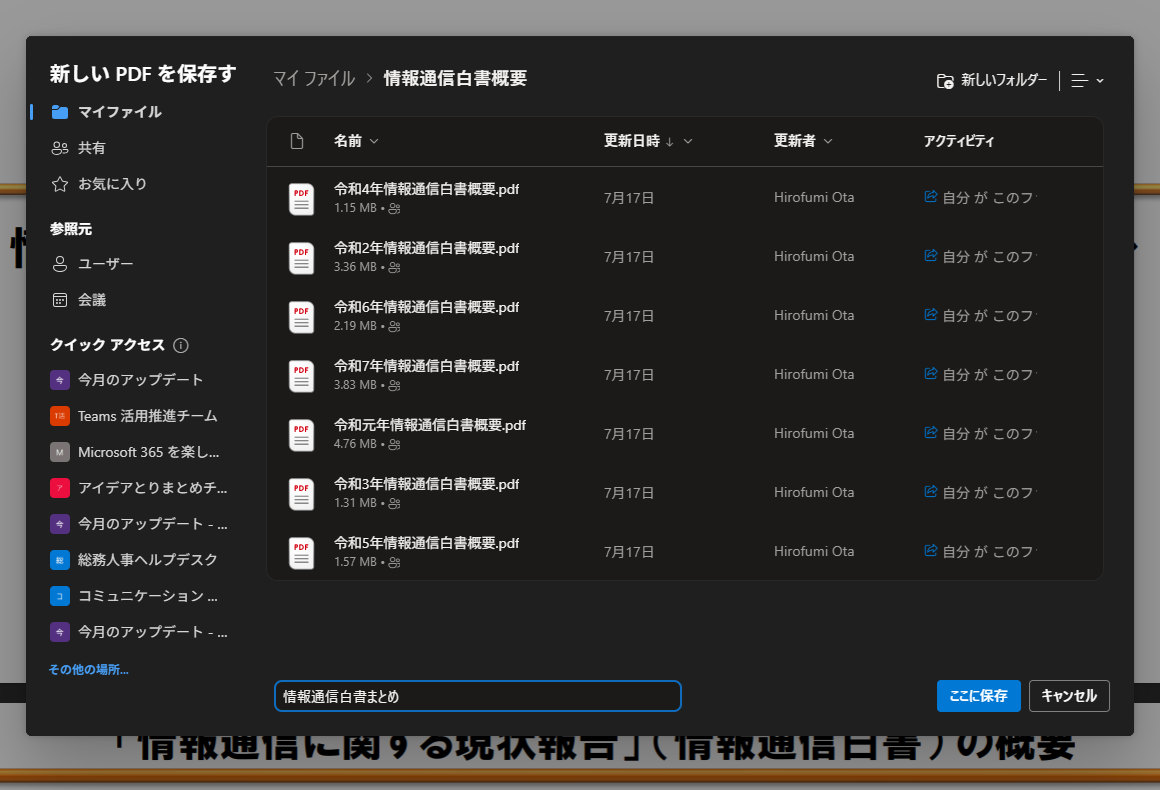 これで完成です。PDF ファイルを Microsoft 365 から外に出すことなく、ファイルをまとめられるので安心で便利ですね。