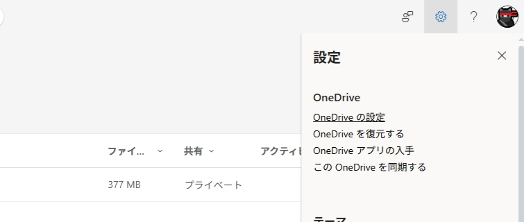 このファイルが実際に消費している OneDrive の容量を調べるには、画面右上の歯車アイコンの [設定] から [OneDrive の設定] – [その他の設定] – [ストレージの測定基準] とメニューを辿っていきます。