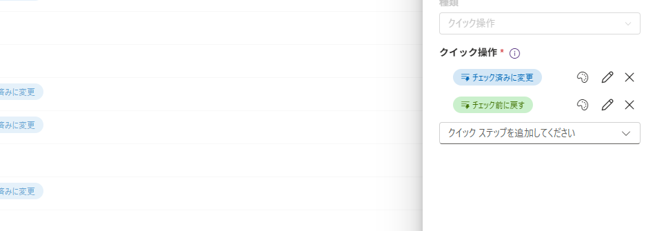 クイック操作列ならではの設定は、列の設定項目の一番下にある [クイック操作] の項目ですね。ここから、どのような処理を列に登録するかを決めていきます。
